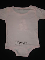 This is what the onsie looks like after I washed it and you can see how the edges have a little worn look. I think it turned out great! This shirt can be done with a capital applique too. It is $12.00